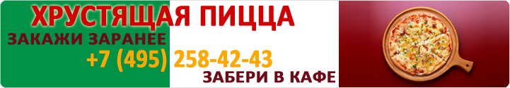 Хрустящая пицца на тонком тесте. Не надо ждать заказа. Можно заказать заранее. Позвони и забери пиццу в кафе в назначенное время. Перекусить в кафе или заказать с собой.