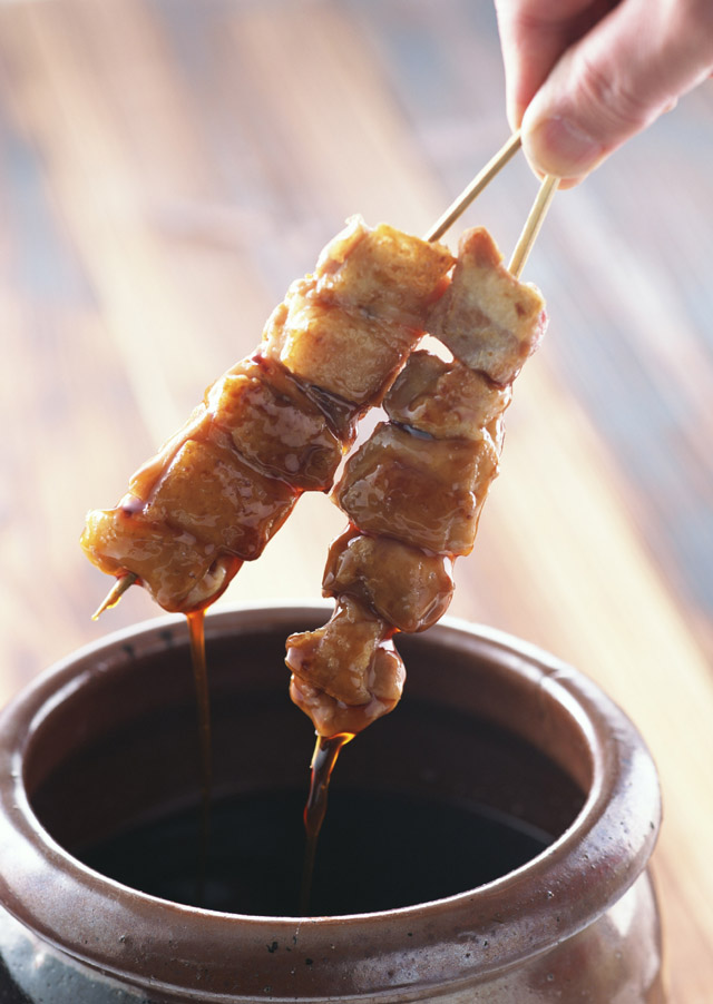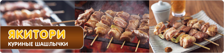 Якитори (букв. перевод с японского языка «Яки» – жареный, «Тори» – курица) – это куриные шашлычки, приготовленные на специальном гриле. Как и в Японии, мы подаем куриные шашлычки либо только с солью, либо со специальным соусом.